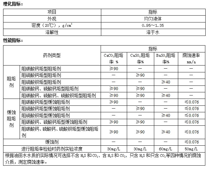 該產(chǎn)品具有耐高溫、耐堿、耐鹽、在高濁度水條件下穩(wěn)定、用量少的特點,緩蝕和阻垢效果完全滿足Q/SY126-2014標準要求。